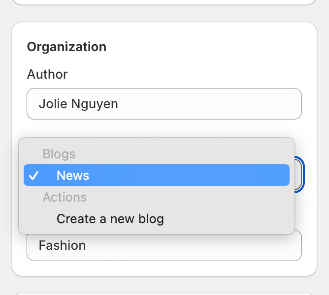 Under the Organization section, from the Blog drop-down menu, select Create a new blog.