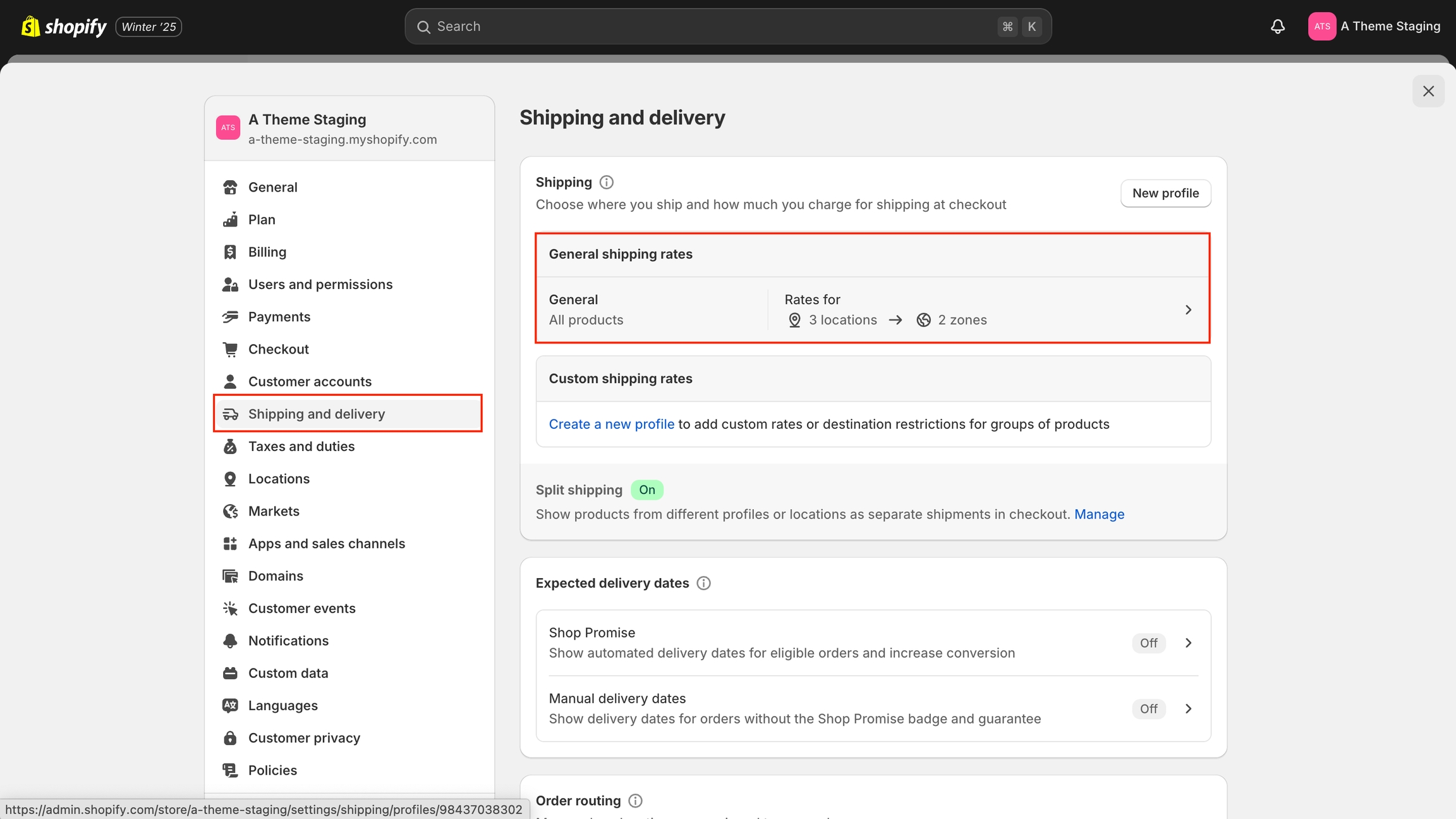 Step 1: In your Shopify Admin, navigate to Settings > Shipping and delivery > Locate General shipping rates