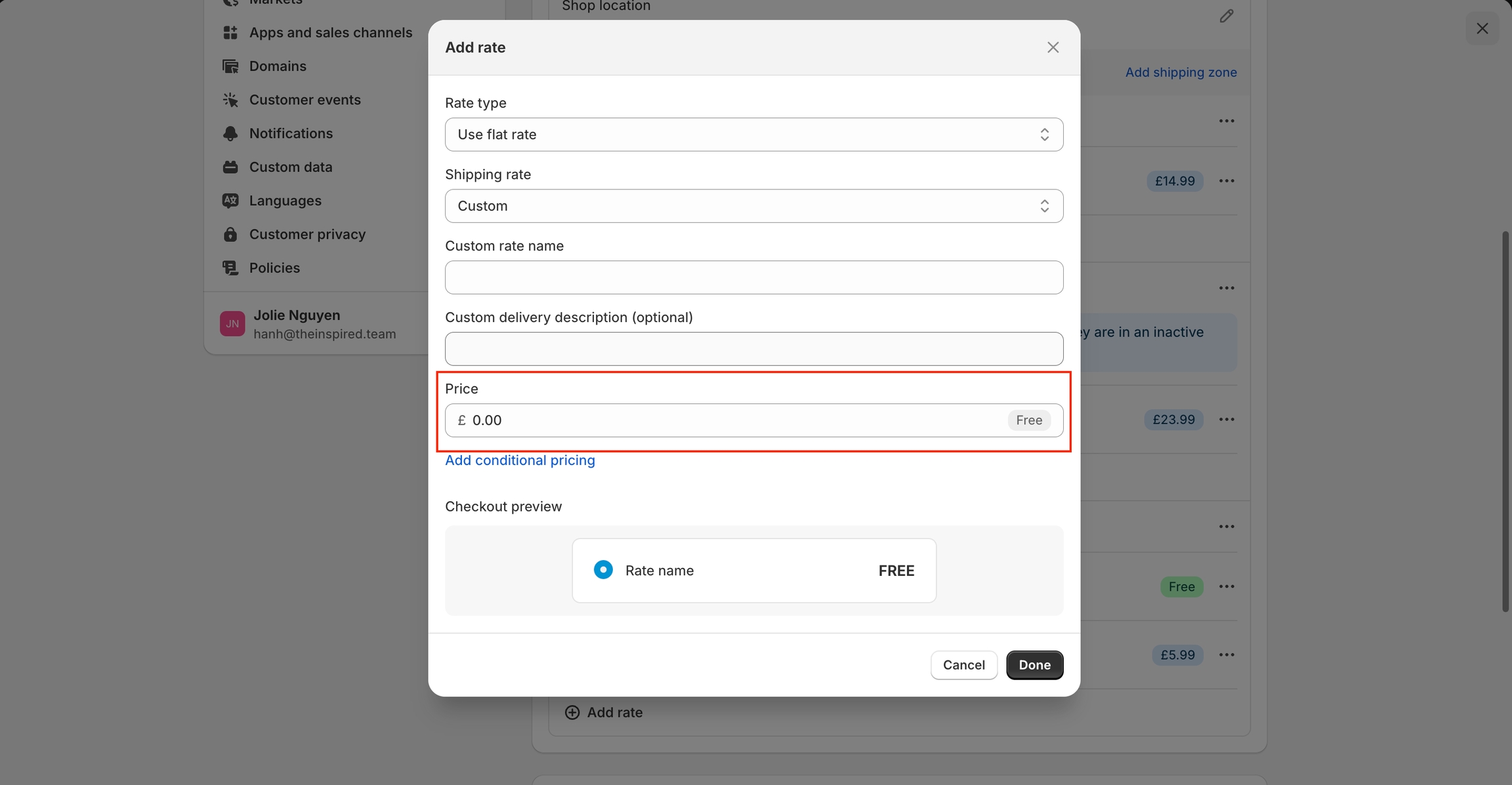 Step 6: Click Done, then click Save to finalize your free shipping rate.