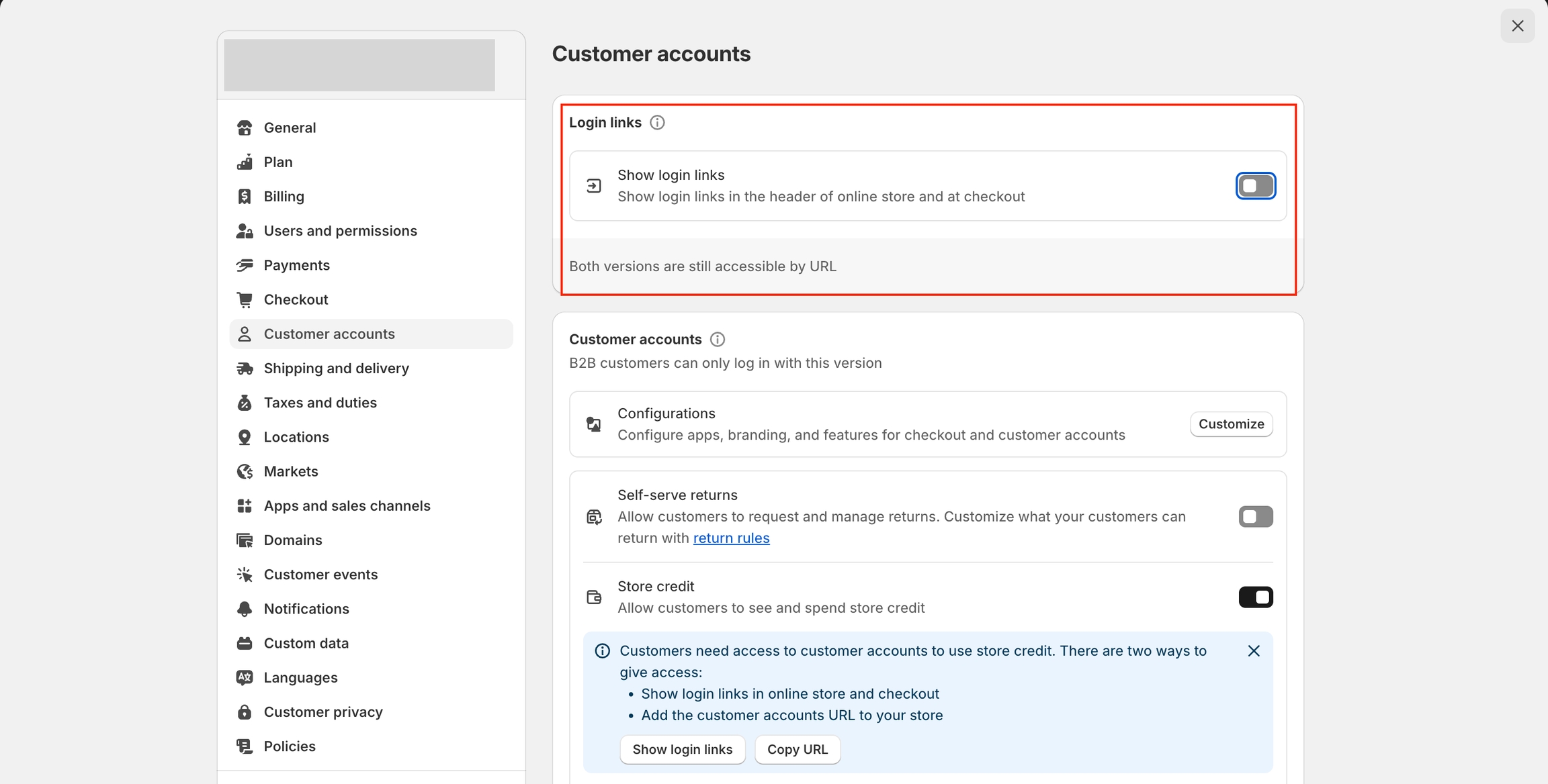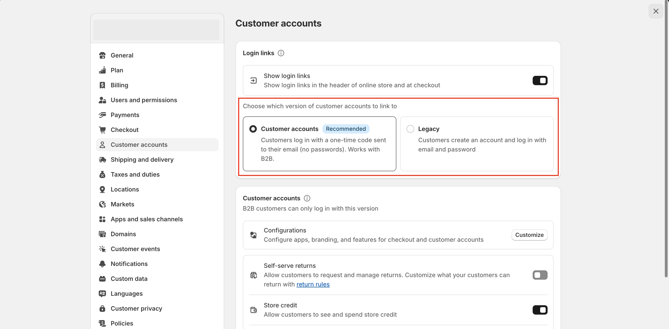 From your Shopify Admin > go to Settings > Customer accounts.