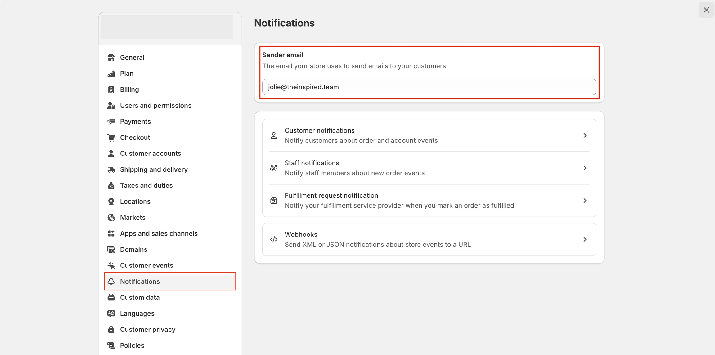 When a customer submits a contact form on your Shopify store, the submission details are sent directly to the sender email address associated with your store.